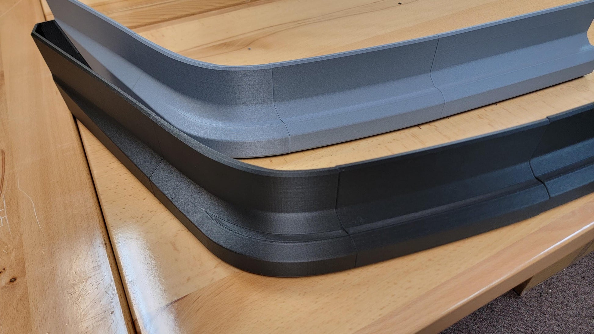 Designed using a high-precision 3D scan of the original bumper, this lip has undergone extensive refinement and 3D printing to achieve an exact fit. Once assembled, it mounts securely onto the stock bumper and requires glue and screws for road use.